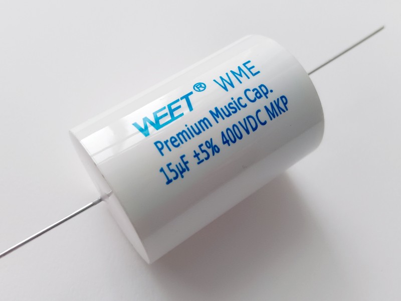 MKP audio capacitor, Audio Grade Capacitors, Audiophiler MKP, MKP Axial Capacitor 400V , Polypropylene Film, HiFi Audio MKP Capacitor, non-polarized metalized polypropylene crossover capacitors , bi-polar Audio Crossover Capacitor Amplifier Module. WEET WME MKP Polypropylene Premium Music Precise Audio Low DF Film Audiophile Capacitor for Crossover and SpeakerLow voltage 50V, 100V.DC and High Precise Capacitance ±1%, ±2% are low voltage polypropylene audio capacitors in small size, which is very suitable for RIAA type filters.
