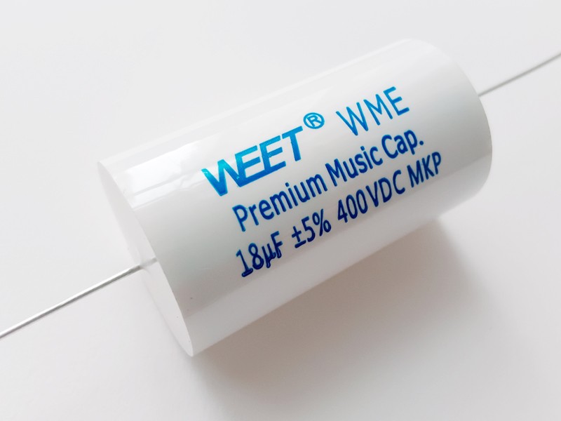 MKP audio capacitor, Audio Grade Capacitors, Audiophiler MKP, MKP Axial Capacitor 400V , Polypropylene Film, HiFi Audio MKP Capacitor, non-polarized metalized polypropylene crossover capacitors , bi-polar Audio Crossover Capacitor Amplifier Module. WEET WME MKP Polypropylene Premium Music Precise Audio Low DF Film Audiophile Capacitor for Crossover and SpeakerLow voltage 50V, 100V.DC and High Precise Capacitance ±1%, ±2% are low voltage polypropylene audio capacitors in small size, which is very suitable for RIAA type filters.